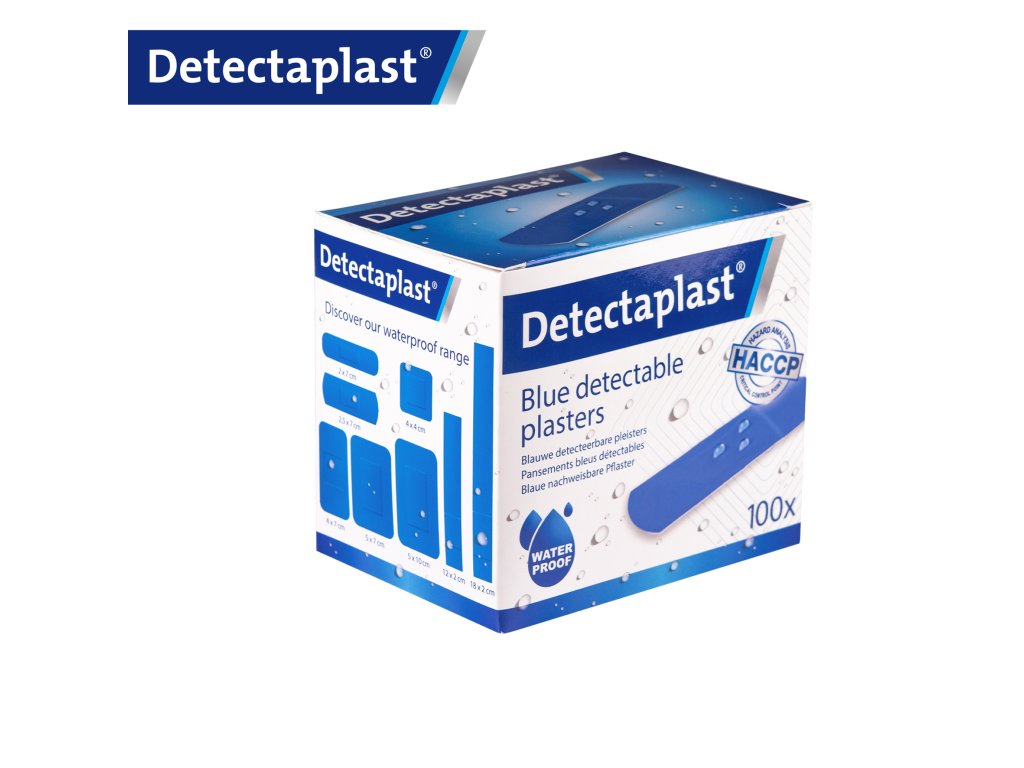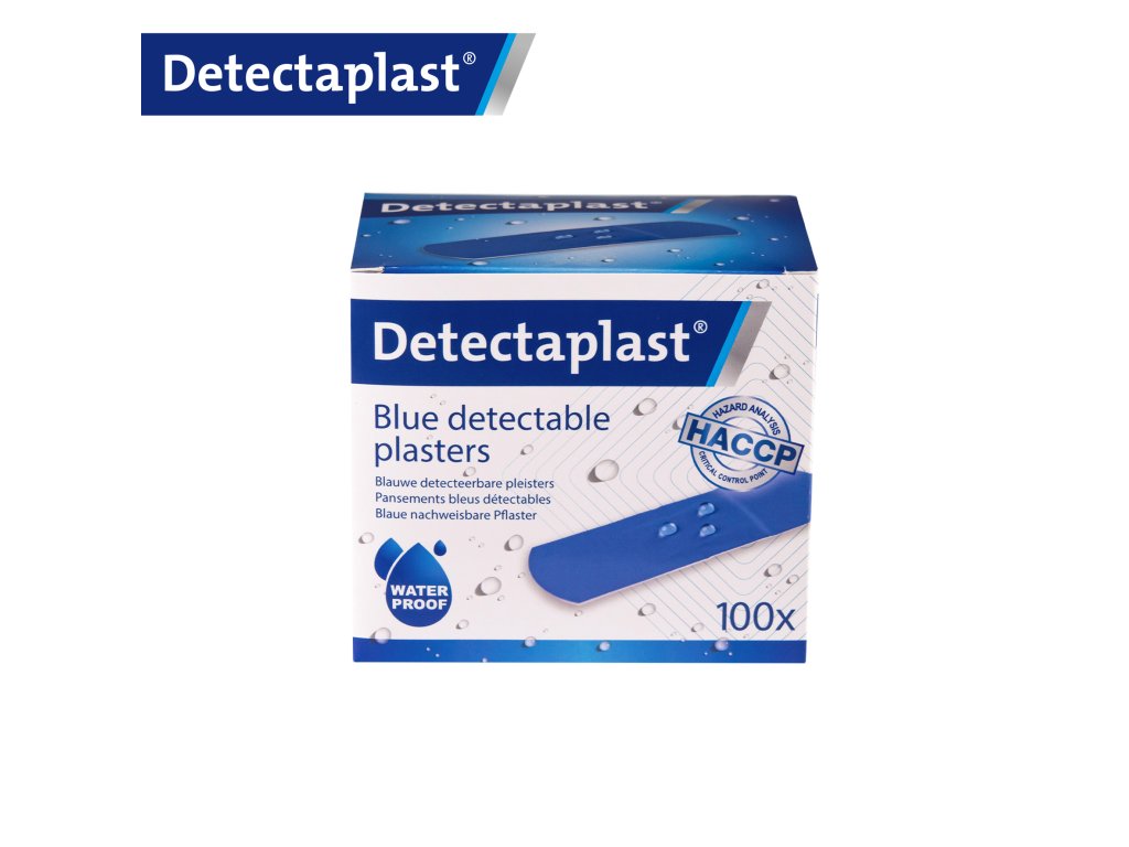 Náplasti jsou modré a spolehlivě detekovatelné standardními detektory kovu. Pro rentgenové systémy doporučujeme speciálně určený typ z naší nabídky.